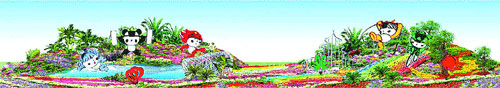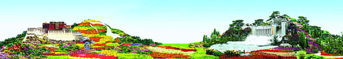 它用五色草和各色鲜花拼成,直径达50米。