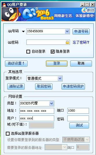 木糖醇 讲科学.破迷信.除陋习... 荣誉会员 注册 2005-07-25 消息 5,900 反馈评分 1 点数 61 年龄 37 2006-11-20 #2 这个问题嘛QQ本身就有, 就是代理上QQ [attachmentid=108472] 但是你要去找代理的IP或服务器. 如果不会加我好友.我远程帮你. 附件 {39FF63AC-4445-4467-A33A-0714AA6C8113}.JPG 48.2 KB · 查看: 244