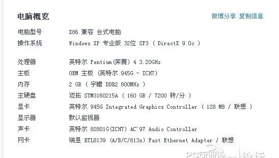 CPU:奔腾 3.2G 945主板 2G内存 160G硬盘 机箱电源为新 全机500块,不要硬盘少100块。