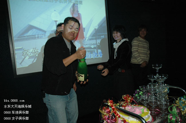 现将镜头转到房间,恰好是网友潇零MM的生日,在大天地工作人员的安排布置下,特把房间装扮成生日房间,同时送上蛋糕及香摈一瓶及水果等....