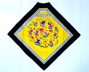 也称“兜肚”以正方或菱形的衣片,有素色和刺绣纹样之分,贴身护在胸乳腹部位,有束带套于后颈,左右两角装有绳带,系于后背,还有有袋无袋之分,袋中通常装有姜桂及麝香等药物,用作治腹部冷痛虚寒。 。
