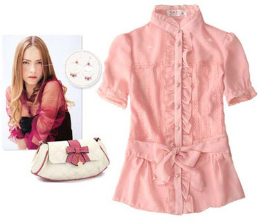 搭配要点:粉色衬衫搭配深色系列的下装彰显成熟与性感,而搭配浅色配饰又提点甜蜜指数。