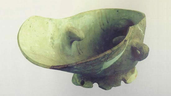 西汉。高50,长112厘米,宽41厘米,利用原石尖端,刻出鱼头,并大致刻出鱼尾、鳍等部分,古典朴拙,不仅实用,且有美感。现藏于:茂陵博物馆。