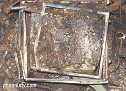 银棱檀香木函内是一个略小的鎏金J顶四天王宝函,用一条约50毫米宽的绛黄色的绸带十字交叉紧紧捆扎。顶面錾两条行龙,首尾相对,四周衬以流云纹;每侧斜面均錾双龙戏珠,底饰卷草;四侧立沿各錾两只迦陵频伽鸟,身侧饰以海石榴花和蔓草。函的四侧面分别刻着四大天王图像。正面是北方大圣毗沙门天王,左面是东方提头赖咤天王,右面是西方毗卢勒叉天王,后边是南方毗娄博叉天王。最外层是一个长、宽、高各30厘米的银棱J顶黑漆宝函。所谓J顶,就是函盖上棱成斜面的函。它是用极珍贵的檀香木制成,用雕花银条棱边。发掘时,此函已严重朽坏。