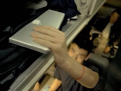 原来是拿笔记本呀,你看,还是APPLE的呢,时尚!