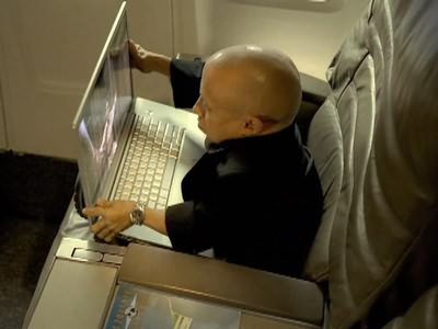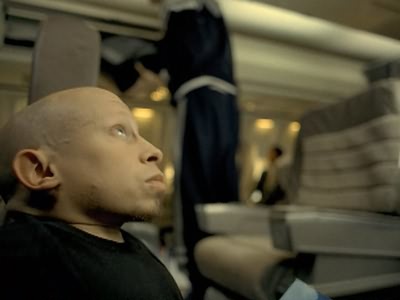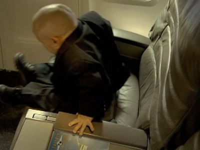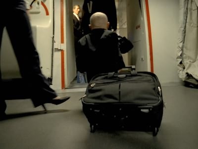 瞧,一个小矮人拉着行李箱上了飞机,这么大的箱子,厉害!