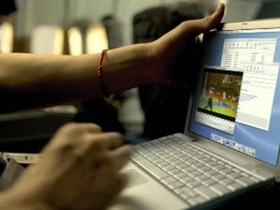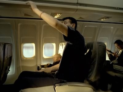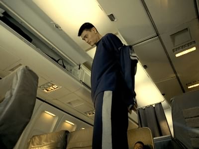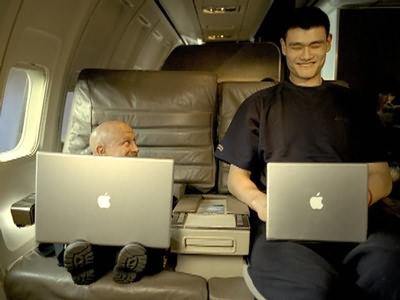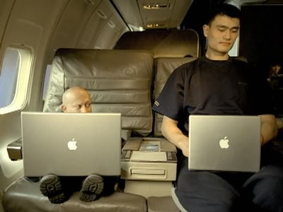 坐在飞机上也忘不了比赛,你看,小巨人又在看NBA呢!