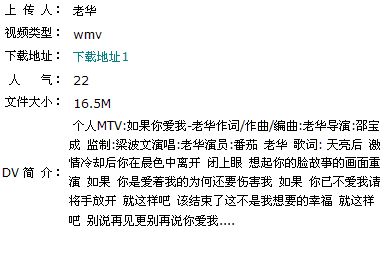 老华的MTV处女作品:《如果你爱我》若播放不流畅 请下载了再用风暴影音播放。视听与下载地址:http://51126.t8t8.com/play/dv_play.php?dv_id=190(绝无病毒) 作词/作曲/编曲:老华 导演:邵宝成 监制:梁波文 演唱:老华 演员:番茄 老华 歌词: 天亮后 激情冷却后 你在晨色中离开 闭上眼 想起你的脸 故事的画面重演 如果 你是爱着我的 为何还要伤害我 如果 你已不爱我 请将手放开 就这样吧 该结束了 这不是我想要的幸福 就这样吧 别说再见 更别再说你爱我....