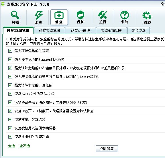 我觉得超级兔子的全面修复和强力修复功能比360好