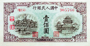 第一套人民币第3版100元背面
