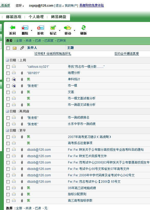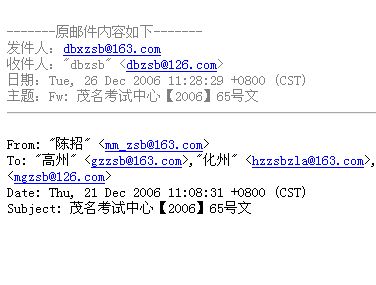 你所贴的邮件图是有关招生办的高考文件邮件截图,不要以为截这个图就骗得了谁,它并非你所贴的高考一模成绩统计邮件,招生办不是管成绩统计的,不论县教育局还是市教育局都是由教研室负责高考模拟试成绩的统计分析!