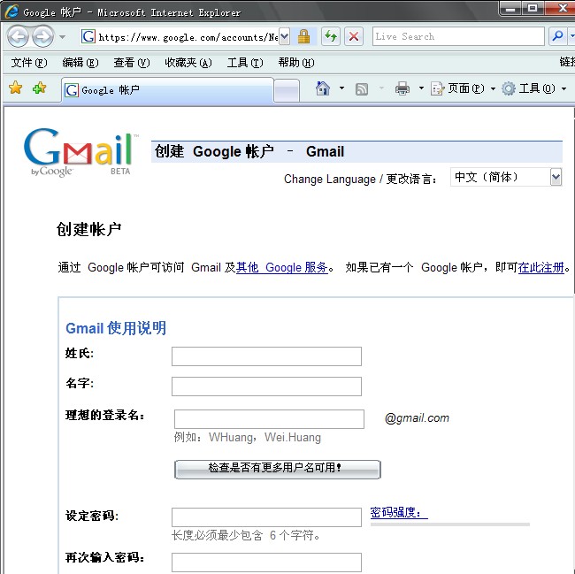 GMail前几日宣布了开发注册的消息,今天在Google Accounts页面中已经可以直接注册GMail,包括我国也已经可以注册.内含注册地址. 申请地址:http://mail.google.com/mail/signup [attachmentid=121409]