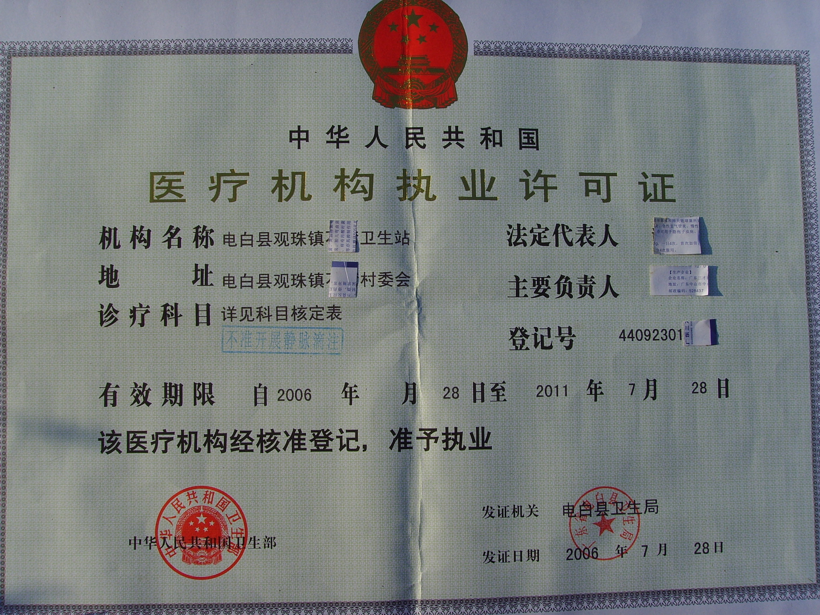 咱们实事求是地讨论讨论这个问题。 第一、根据你找到的《广东省农村卫生站基本管理规范(试行)》第二条,卫生站“不设病床和不开展静脉滴注等设备条件要求较高较复杂的治疗工作”。尽管这个依据对你的观点不利、对我的观点有利,但我可以告诉你,在1994年国家《医疗机构管理条例》和1995年《广东省医疗机构管理实施办法》出台后,其实《广东省农村卫生站基本管理规范(试行)》已经废止了。 第二、新出台的《条例》和《办法》在字眼上确实没有具体规定农村卫生站是否可以进行静脉滴注――这是一个漏洞――因此你说电白县卫生局的做法不合法,不完全对,但也不是没有道理。但是茂名市卫生局《茂名市农村卫生站考核办法》明确规定茂名市的农村卫生站不得开展静脉滴注,因此,电白县卫生局的做法是有依据的。当然,法比规大,规又比文件大,当一些地方的农村卫生站跑到法院去要求“静脉滴注权”时,法院为难,卫生局尴尬,这是事实。 第三、农村卫生站对“静脉滴注权”是孜孜以求的,这里有个利益驱动。但负责本行政区域医疗机构的监督管理工作的卫生行政部门,不能不考虑医疗机构的从业人员与硬件水平,不能不考虑放任不具备资质的医疗机构随意扩大经营范围、万一发生医疗事故带来的严重后果。在这种情况下,行政管理部门行使一定的自由裁量权,是负责任的表现。 第四、大家可以看上面第一张图片,这个卫生站的诊疗科目是“全科医疗科”,这五个字是打印证书的软件自动生成的,这个是国家卫生部的软件,改不了的。“全科医疗科”是个什么概念?形象地说,就是内科外科妇科儿科什么科都可以诊治,“全科医疗科”的从业人员必须是医学院本科毕业,再进行二至三年的全科医学培训。连县级正规医院的诊疗科目都没有“全科医疗科”啊,村级卫生站来个“全科医疗科”!卫生部是怎么搞的,我是莫名其妙的。我想,这就是为什么县卫生局要加盖一个“不准开展静脉滴注”蓝章的道理了。 第五、我认为,国家没有明文规定农村卫生站能否开展静脉滴注,不能说错,而是将把关的职责交给了具体的卫生行政管理部门。换句话说,要是你的村级卫生站有人投资,有具备资质的医护人员,有CT、核磁、B超,不要说静脉滴注,你要作开颅手术都可以! 以上管见,欢迎大家提出不同看法。