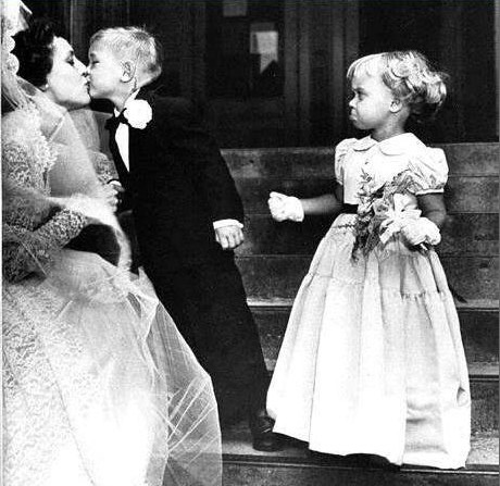 明明婚礼是别人、大人们的事,明明男孩是在给新娘送戒指时礼节性的吻,但对于纯洁的捧花女孩来说,这种亲热的举动,仍让她妒火中烧,悲愤难忍!女孩的天性流露抓拍得十分到位。