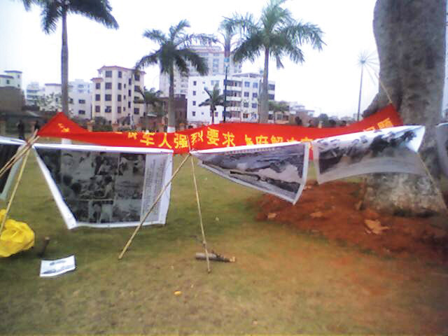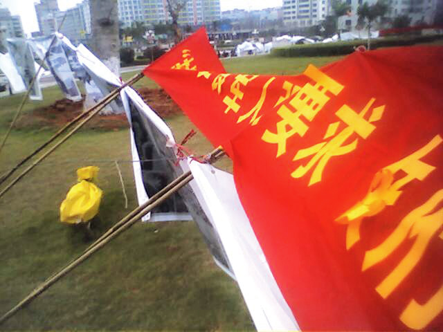哈哈,你没看横幅,打的是"纪念对越反击战图片展"的,其它的诉求再隐藏其中,在中国,你公开干是不行的.