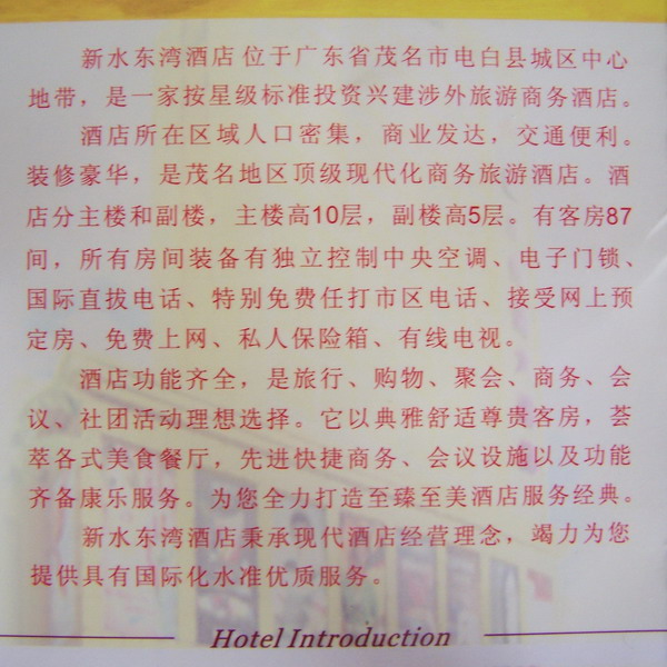 byronroy . 荣誉会员 注册 2005-08-17 消息 70,153 反馈评分 356 点数 191 2007-05-05 #37 住宿篇信息补充: 五一期间曾经入住一晚,觉得还行,当时入住是250元(听说平时是一百多),本想住金电,谁知道没房了. 附件 100_6352.jpg 73.3 KB · 查看: 361 100_6353.jpg 115.5 KB · 查看: 383 100_6354.jpg 108.1 KB · 查看: 394