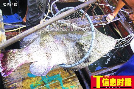 渔民告诉记者,这鱼属“青斑”。平时渔民钓到的“青斑”不外8~20公斤,这么重的“青斑”比较少见。目前市场每公斤收购价达150元左右,钓到的这条大鱼一下子入账6000多元。渔民说,钓这条鱼难度相当大,当时,扎入鱼身的钓子令鱼野性发作,他猝不及防被拽入海中。他在水中马上放长线,让鱼儿逃窜,并在游上渔船后冷不防将钓子向右一拽,使之深深的勒入鱼身,疼痛的鱼儿立即加快逃跑,他又如法炮制,直到把鱼儿累垮,才把它拖上船来。人鱼相搏持续半个多小时。