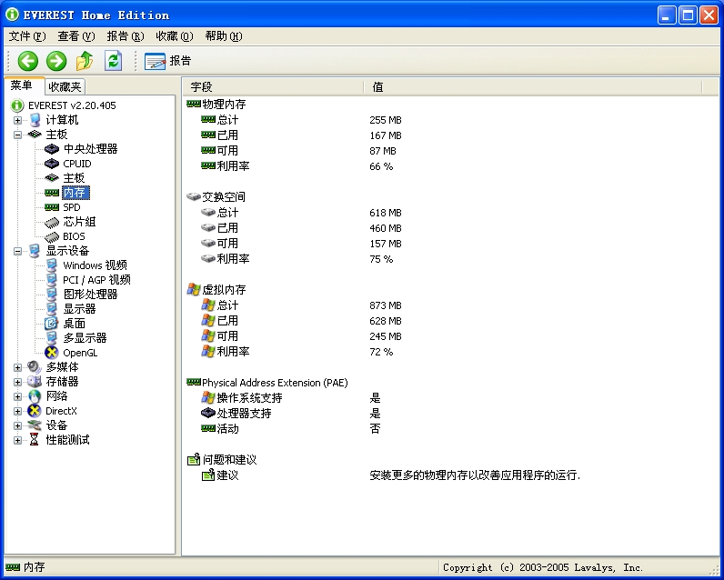EVEREST Home Edition © 2003-2005 Lavalys, Inc.