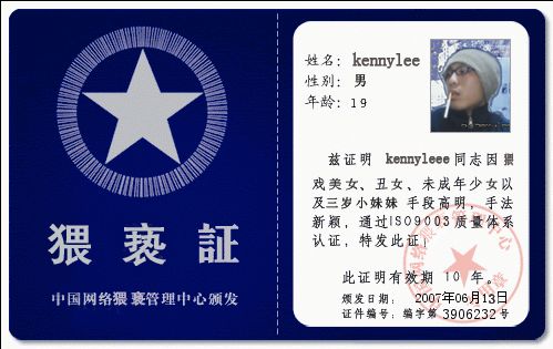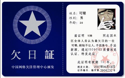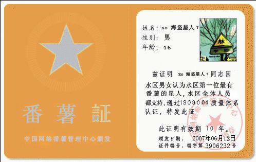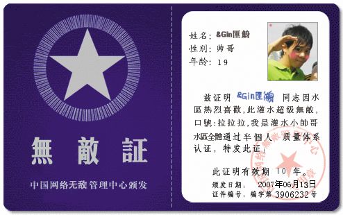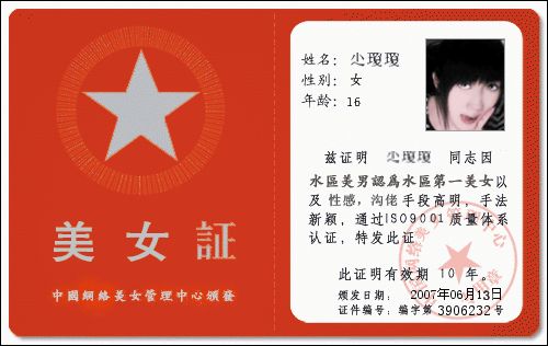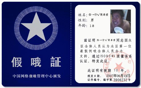 此贴只为娱乐大众之贴,任何有此证件的人`不得有任何异议.