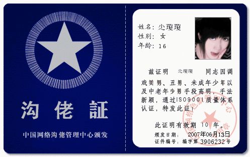 &GinS 淼木湍默等待. 注册 2005-05-03 帖子 18,712 反馈评分 0 点数 61 年龄 37 2007-06-13 #77 [attachmentid=135285] 附件 沟佬证 拷贝.jpg 34.8 KB · 查看: 85