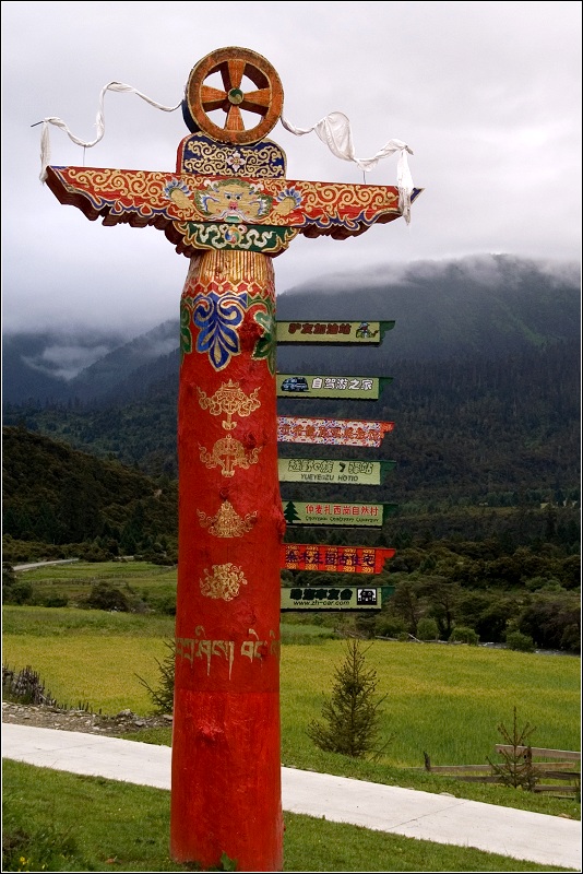 村口的路标很有民族特色
