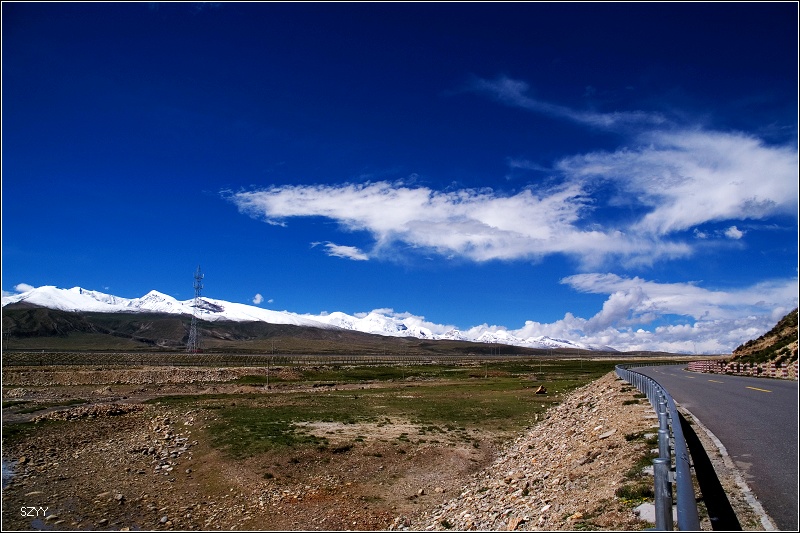 没进拉萨,直接从堆龙德庆县上青藏公路,至此,第二阶段行程结束,开始踏上第三阶段的回程. 又有交警发限速卡。青藏公路非常平坦,开着很省心,青藏铁路相伴,远处逐渐出现雪山,雪山越来越多,看了看地图,应该是念青唐古拉山脉 [attachmentid=145546] 青藏铁路桥 [attachmentid=145547] [attachmentid=145548]