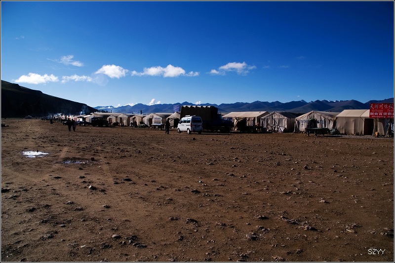 11点半在停车场开始等达咏和老严,他们去爬山了,北方郎头疼的厉害,我也感觉很缺氧,太阳穴两侧好像有人使劲往里压似的,等了两个多小时,跟他们联系不上,用长焦镜头和望远镜望眼欲穿地盯着山顶,和周围的人群,始终不见他们人影,打手机也打不通,去找了两次,不知道他们是不是从别的路下山了,因为我们两个都很难受,只好先撤回当雄,在当雄等他们了。回来下山的时候,快到门口了,警察把所有车都拦住,让司机往刹车片上浇水,因为昨天一辆旅游车刹车失灵,翻车了,死了8个游客。我们的车放在手动档上,基本不用踩刹车,发动机的制动效果就很好了,所以刹车片不需要浇水。到了当雄,吃了饭,去隔壁药店买了些药,还是不舒服,干脆躺在车上睡了一觉,感觉稍微好了些。差不多等到将近5个小时的时候,老严来了电话,他们过了一会儿也坐别的车到了当雄。