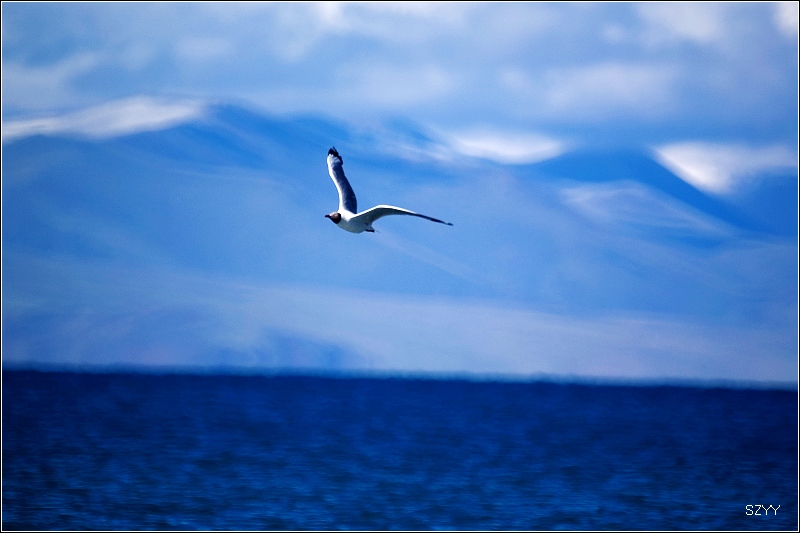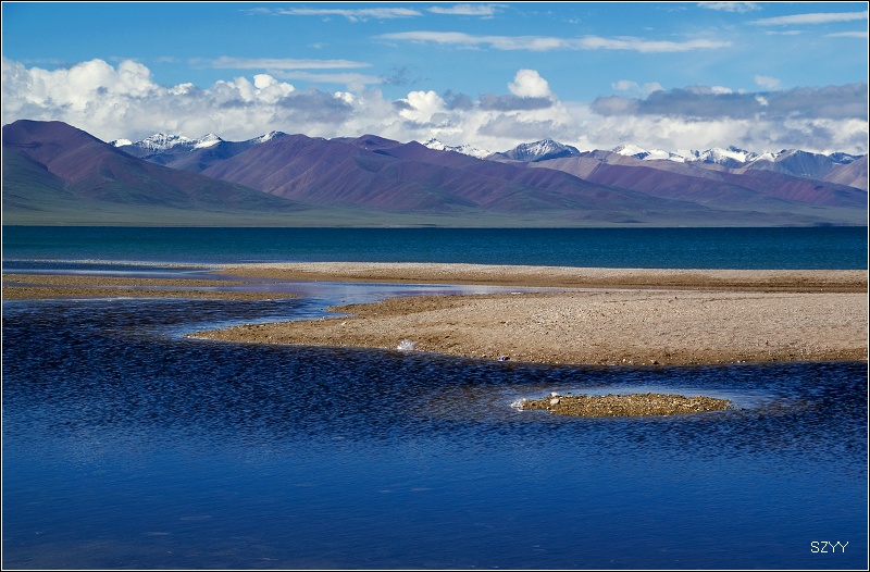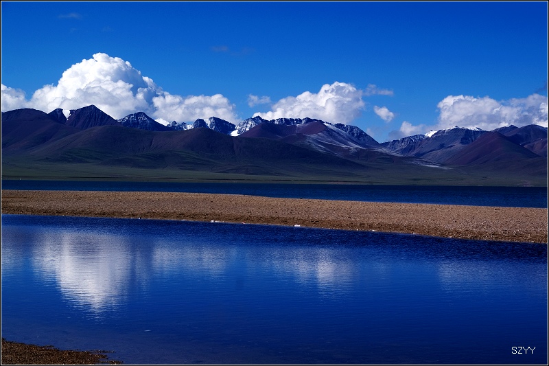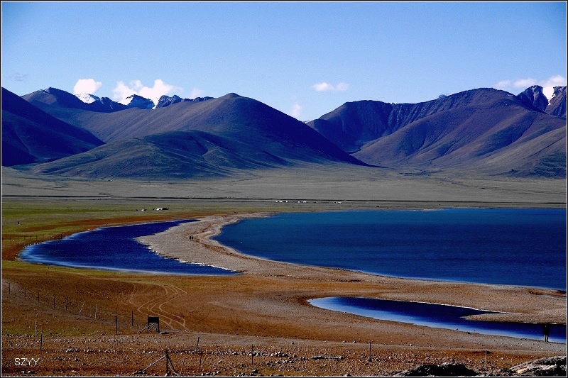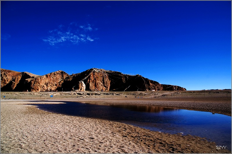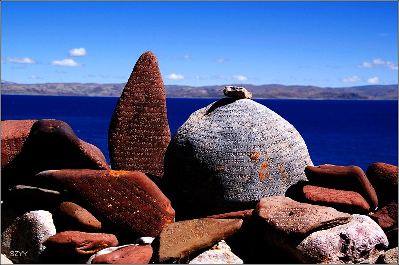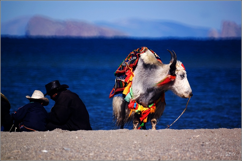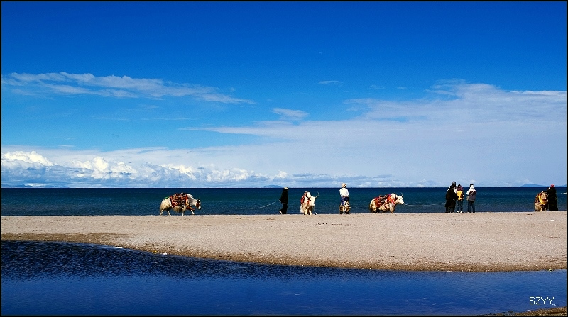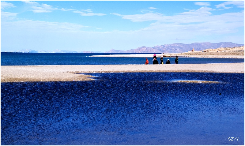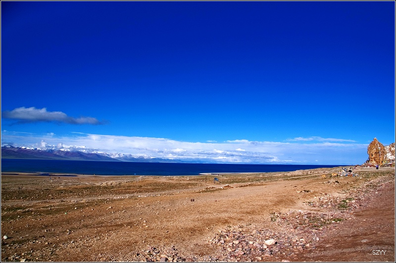 走了几十分钟,到达海拔5177米的那根拉山口,一过山口,就看见幽蓝的纳木措静静地躺在山下,很奇怪水为什么能蓝成这样。