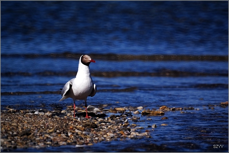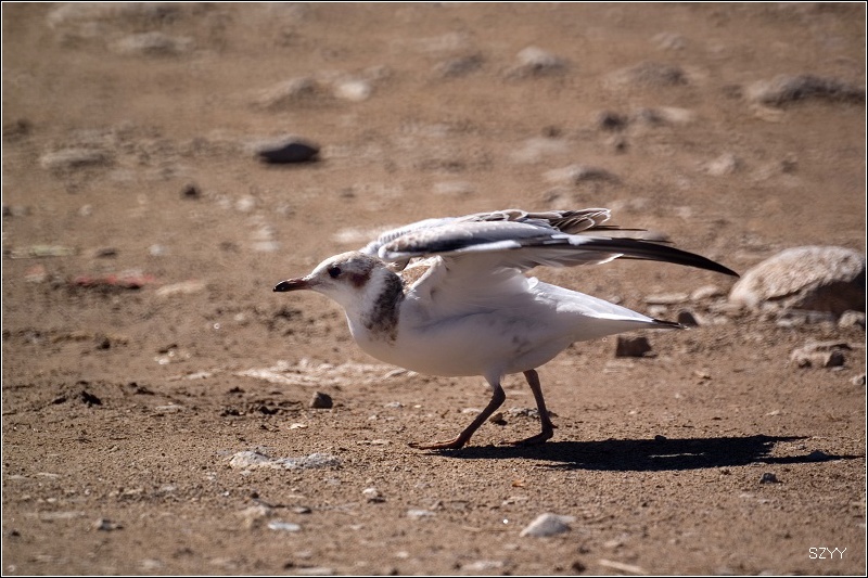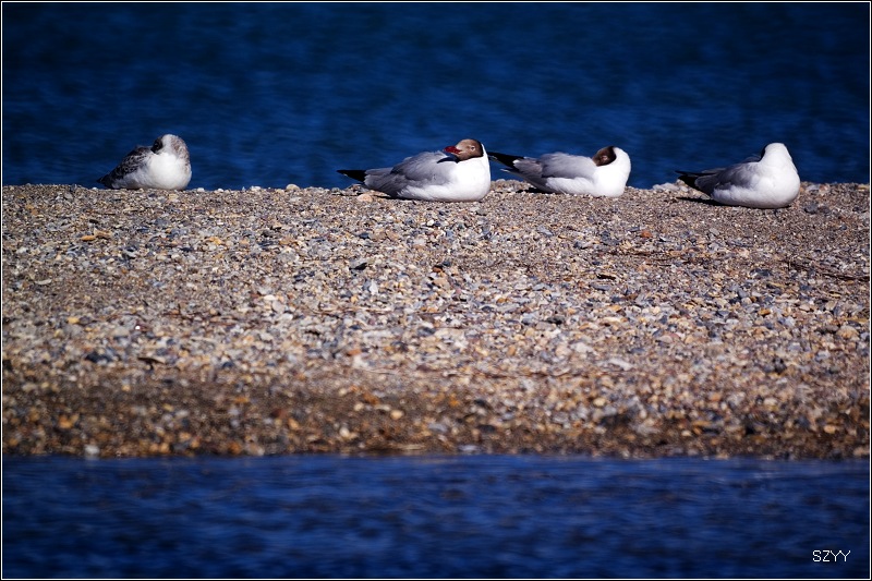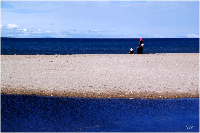 虽然海拔不是很高,但是由于植物稀少,我感觉缺氧比较明显,所以把动作放的很慢,上高原才会理解为什么那些登山运动员动作都那么慢。风很大,全身上下捂的严严实实,带着手套还觉得手冷。先在迎宾石附近拍照,然后用极其缓慢的动作,花了不少时间才走到湖边,拍了一会儿,再走回来,因为是上坡,所以动作更慢。回到停车场,人和车逐渐多了起来,遇见一辆从肇庆来的本田飞度,一家三口人,是从青藏路来的,跟我和老郎一起合了张影。他们说青藏路有一段路面很烂。去年他开车走过青藏线,今年路况比去年要差,大货车超载,对路面损坏很严重。
