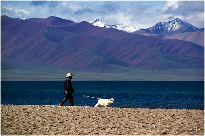 继续开到纳木措,我们到的时候,旅游车都还没来。在停车场停好车,用缓慢的动作背上摄影包,慢慢地往湖边走。