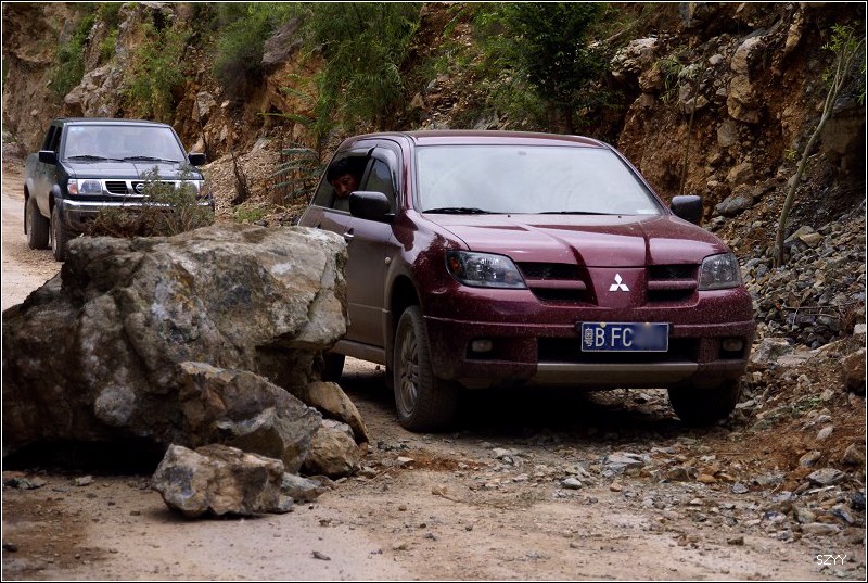 推土机 荣誉会员 荣誉会员 注册 2004-11-28 帖子 2,034 反馈评分 0 点数 61 2007-08-19 #162 走了一段时间,进入土路,实际是砂石路。路面很窄,车倒是不多。我说:就怕下雨,前面的路会怎样,我们心里都没底。三辆车鱼贯而行,我们走在前面,这时天真的开始下雨了。我接替北方郎开了一段,路上车很少,在一个急弯的地方,对面来了一辆车,车速非常快,由于我思想不够集中,吓了我一大跳,方向盘都没扶稳,又开始爬山,我心里没底,交给达咏开车。关键时候他该上阵了。山高路险,坡陡弯急,泥泞湿滑,达咏动作熟练,给我们不少信心,后面的宝来和丰田4500逐渐跟我们拉开了距离。不一会,对讲机里传来关老师的声音,说他们的车打滑,让我们慢些,我们基本上没感到行车异常,这时候才体现出四驱车的优势。天在下雨,随时都有新的塌方的危险,路上不断有养路工人在清理路面,不一会,遇到一个巨石和塌方的石堆拦在路面,好在有个铲车在清理,等了等,就可以通行了,总的感觉,四川这边养路工很多,到处都有,云南则不同。我们逐渐上到山顶,气温明显下降,我们的氧气袋又鼓了起来,这个氧气袋随着海拔的升高或降低,一会儿鼓一会儿瘪。看看到达山口,碰到一个驾驶大货车的司机,拦我们的车,问他什么事,他说有没有吃的,我们于是给了他一些食品。 我们已经到了山口,我用对讲机告诉了老曲和广州光头。