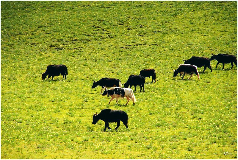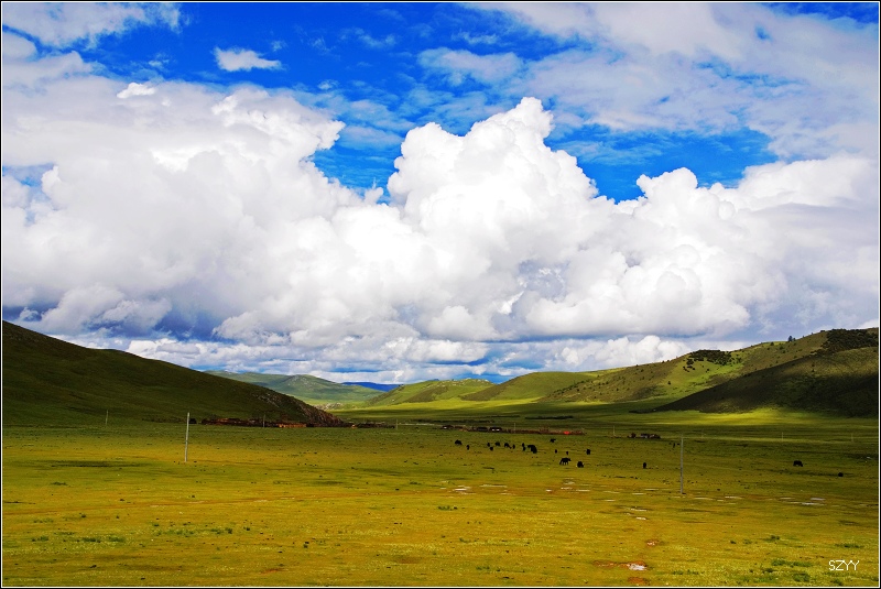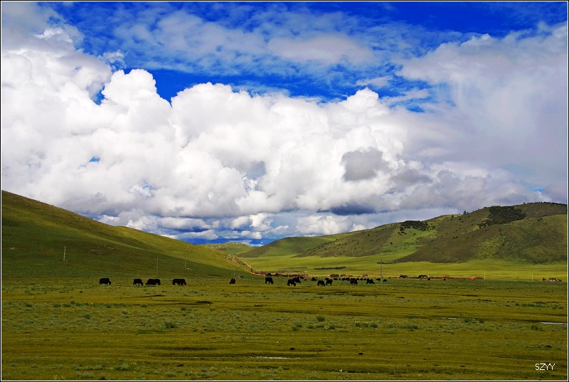 推土机 荣誉会员 荣誉会员 注册 2004-11-28 帖子 2,034 反馈评分 0 点数 61 2007-08-19 #164 翻过山口,景色骤然不同。天气也放晴,太阳出来,一片洁净碧绿的大草原展现在眼前,蓝天白云下,牦牛和马儿、羊儿在安闲地吃草。我们兴奋极了,立刻停车开始拍照,耗用了不少时间,光头和老曲的车早就跑没影儿了。