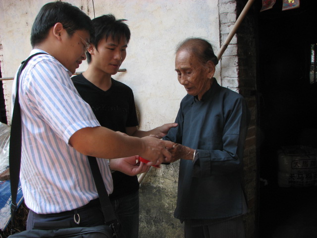 这位老人,严重驼背,站立成n形,只好坐着和我们交谈................