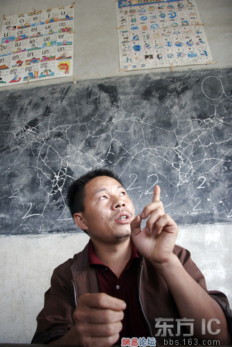 4.隆九金老师从17岁开始教书,到现在都有17年了,黑板或许见证了他走过的岁月..