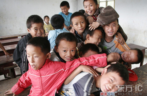 2.在村寨学校读书的孩子们课间休息时抱成一团,脸上的笑容总是那般的无邪..