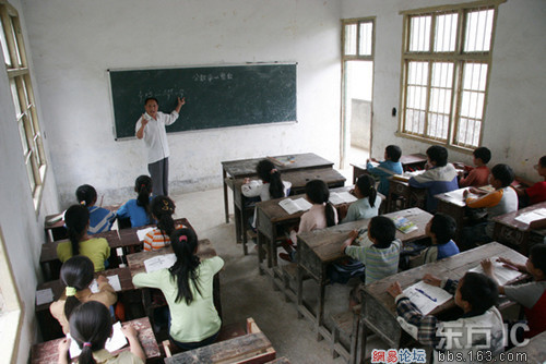 3.新分配的老师还没到,学校老师太少,现在一般都是一个老师负责一个班。图为石元茂老师在给六年纪学生上数学课。