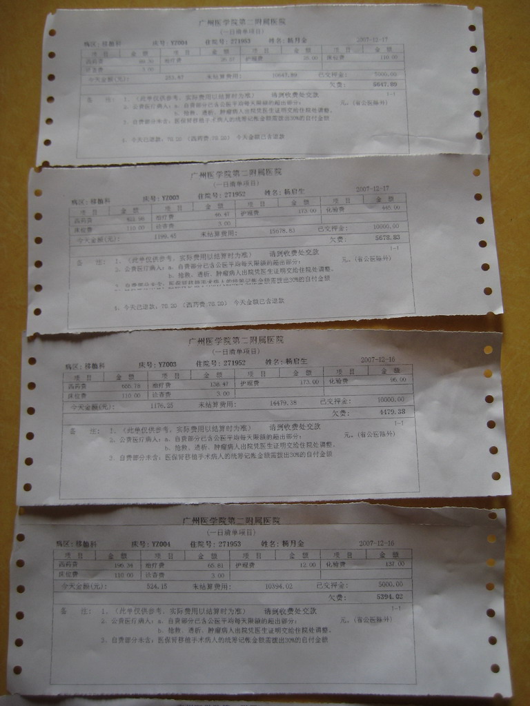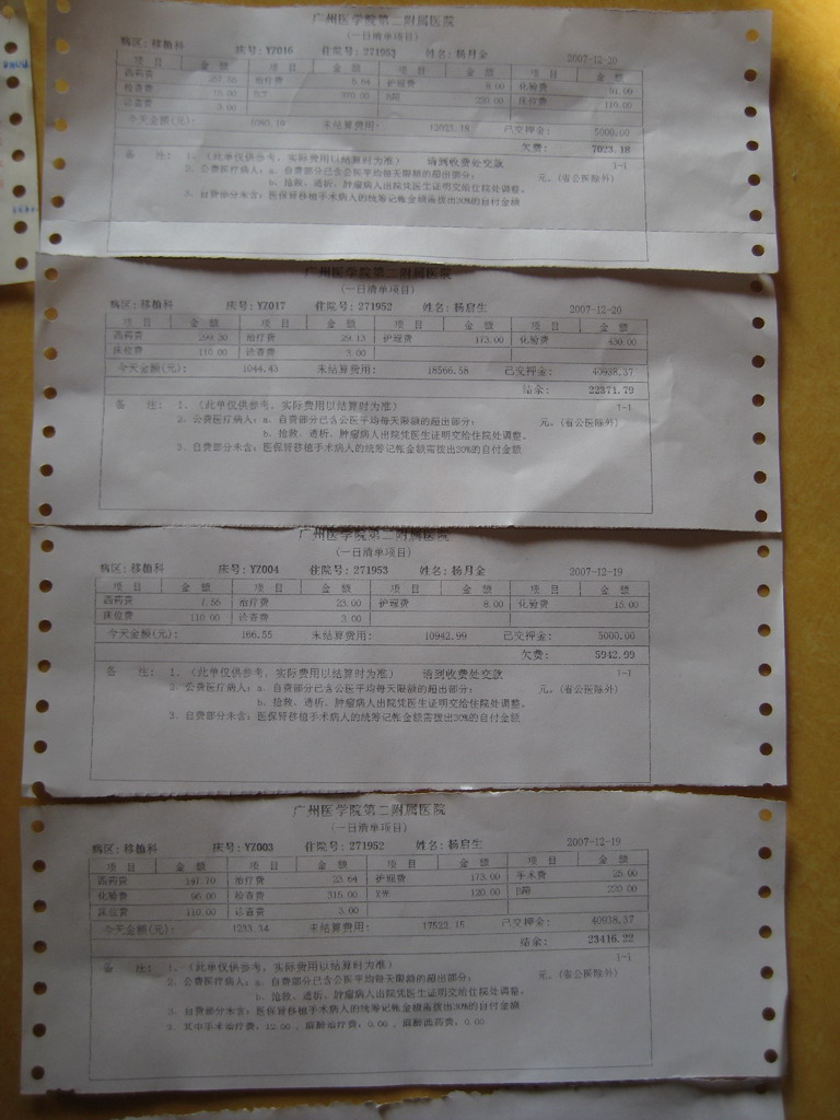 小杨到广州共花费了7万元左右,得到论坛广大热心人士的捐助将近36000元,并得到多名热心朋友到医院送关怀.送温暖......这是难能可贵的,看到了我们网友善良,爱心和助人为乐的精神,这是十分可贵的,也是值得佩服和尊重的.