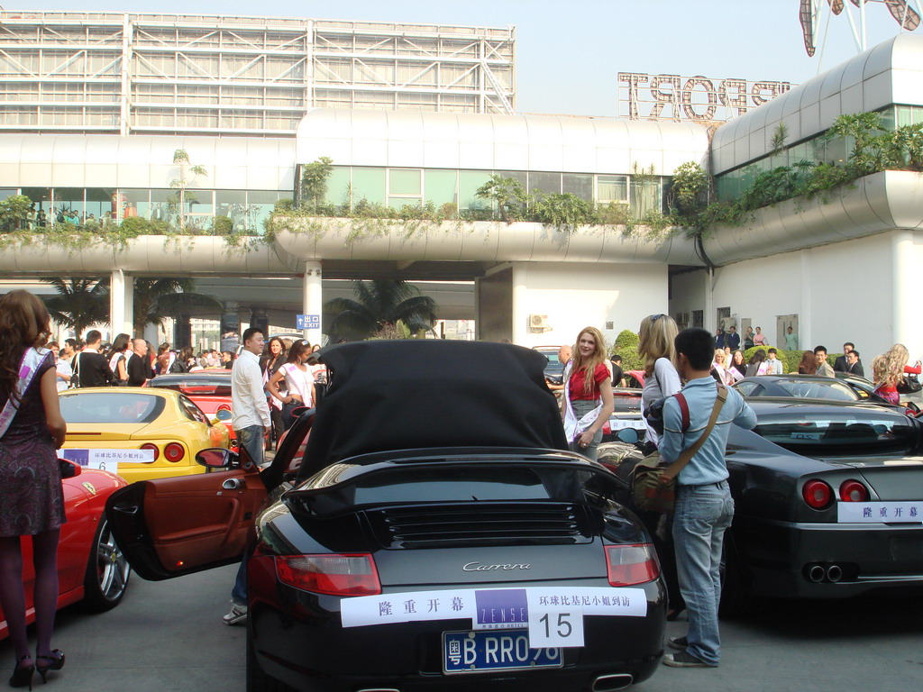奥一网讯 昨日下午,深圳罗湖区一家老酒店重新装修后开业,60辆法拉利、保时捷跑车“助阵”。据酒店工作人员介绍,这些超级跑车来自深港两地,其中不少车主是老板的朋友。如此奢华的场面吸引了不少市民驻足围观,交警部门也出动维持附近交通秩序。除了名车云集,酒店老板还请了刚在三亚结束选美赛事的“环球比基尼小姐”和香港明星曾志伟、苗乔伟、戚美珍等做嘉宾。一位“环球比基尼小姐”走到一辆黑色保时捷跑车前时突然向同伴高呼:“Thisismycar.”惹得围观者哈哈大笑。本报记者黄宇摄影报道