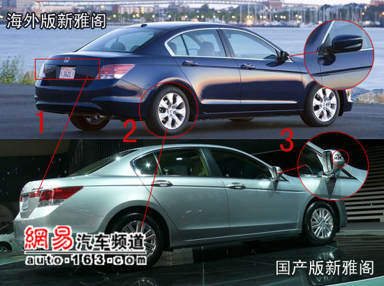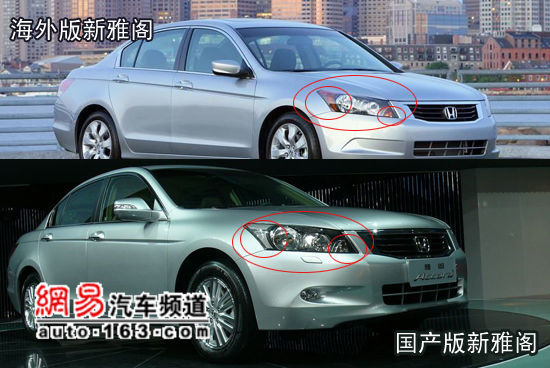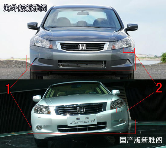 首先简单对比一下八代雅阁海外版和国产版外观上的一些不同。