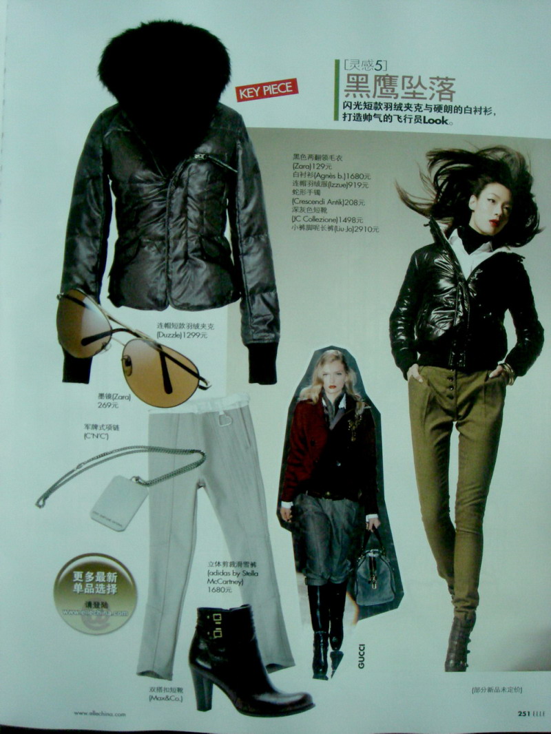 动植物纹样变化来的野性印花,薄水手条纹针织和利落的马裤带来的海军装灵感,粗针织与军装灵感的时装,幽幽光泽的皮革大衣,闪光羽绒短夹克和硬朗的白衬衫……这些共同构成了07秋冬魅惑性感、冷峻潇洒的多变军装灵感!