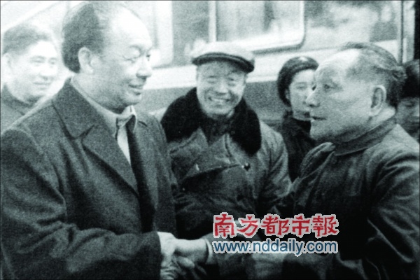 1984年1月24日,梁湘在罗湖火车站欢迎邓小平视察深圳。