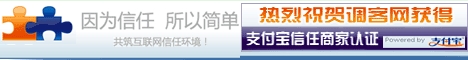 调客网得到支付宝信任商家认证,所以大家可以放心注册