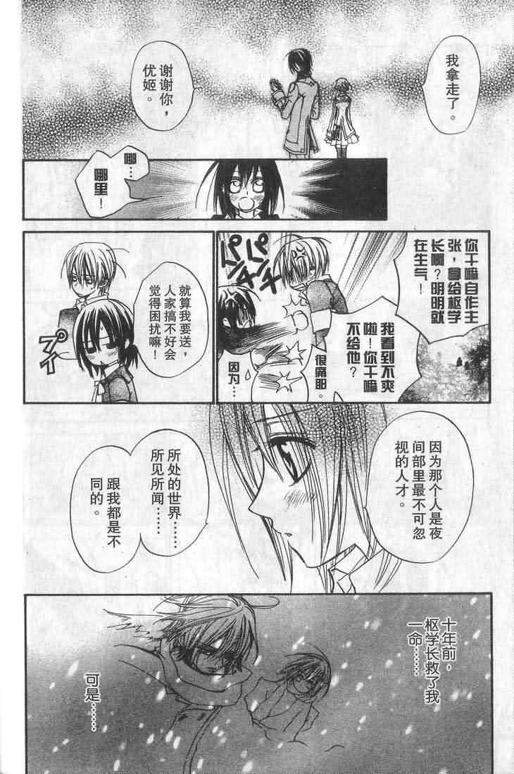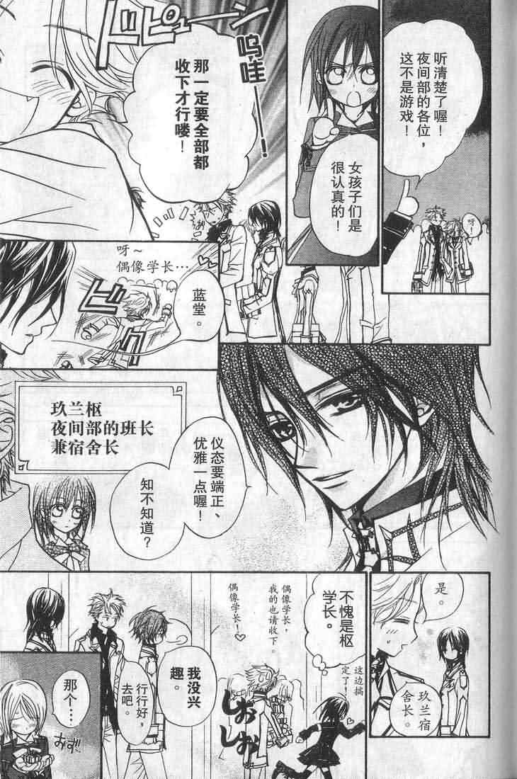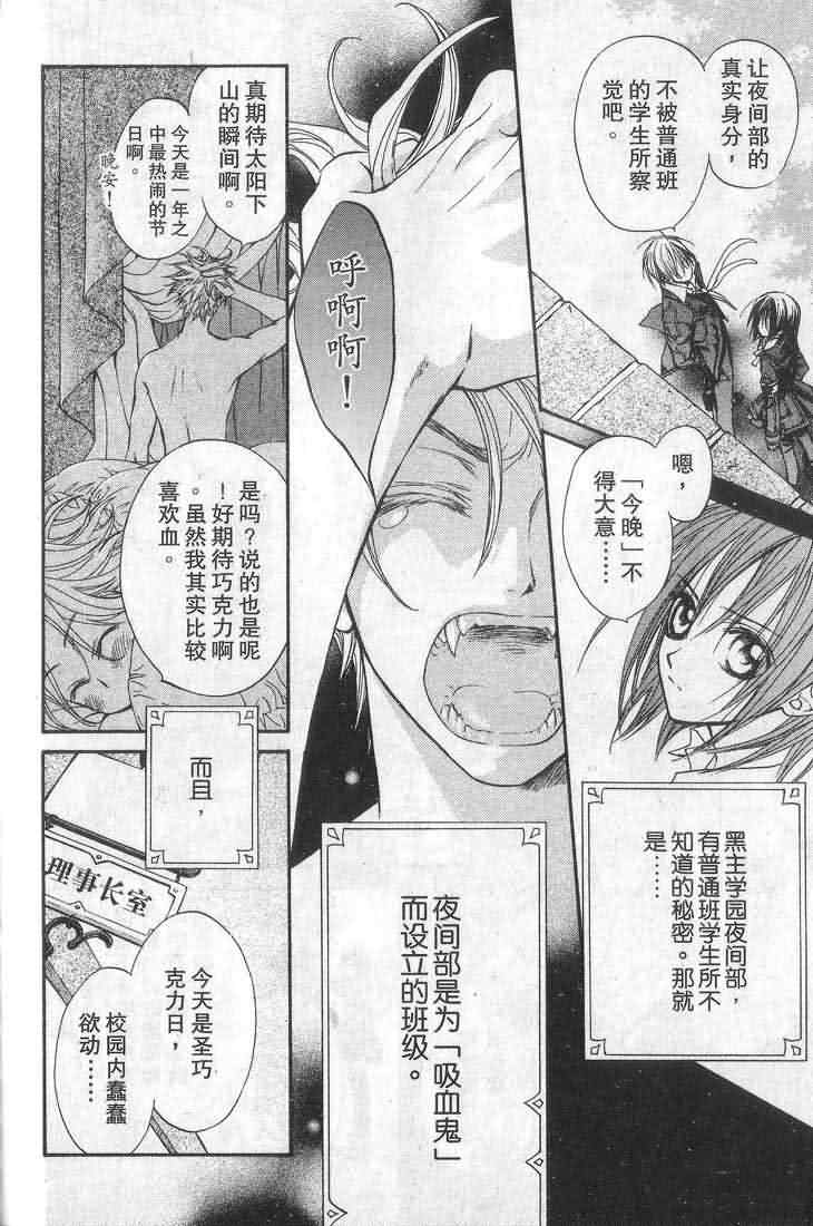 本作的故事发生在黑主学园,学园存在着两个班级,那就是白天的日校,晚上的夜校。美型精英集团“夜间部”,里面的主要成员都是一些超美型的帅哥,而且他们的身份不是人类,而是习惯于暗夜行动的吸血鬼。本作的女主角优和她朋友零则属于“学园守护人”,其主要职责就是守住校园内有吸血鬼这个惊天秘密。没有十年前的忘记的优姬,憧憬着美丽而且有着纯正吸血鬼血统的夜间班寮长柩,一边守护着他们一边与伙伴零、抚养自己长大的养父――黑主学园的理事长一起度过自己的学园生活。