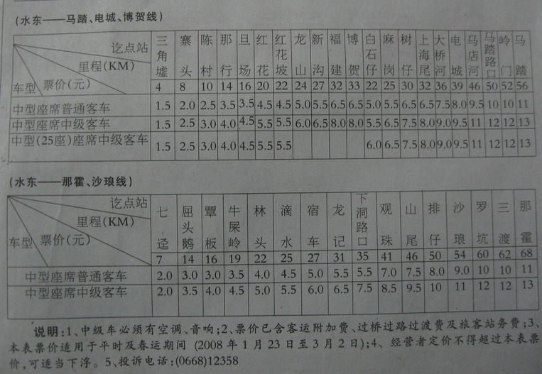 [attachmentid=162940] [attachmentid=162941] 大家应该一直都是水东到电城十元钱,但物价局规定才是9.5元,收了这么久相信有关部门不可能不知吧,树仔到麻岗只要一元,相信没谁交过这个价吧?电白的物价\交通到哪了?