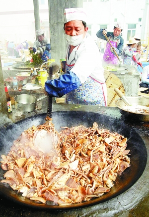 热闹.什么时候我们的年例也来个大盘菜多好啊!