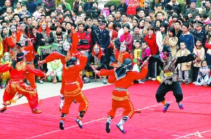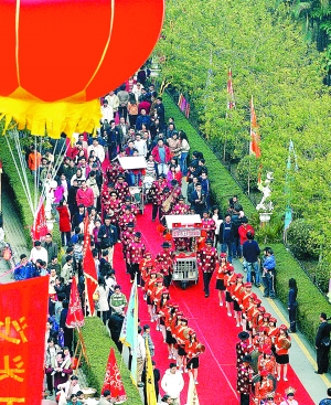 吃大盆菜、舞龙醒狮,昨日福田下沙村热闹非凡,以“深港两地心连心,元宵盆菜迎奥运”为主题的2500席盆菜宴招待海内外来宾与乡亲。