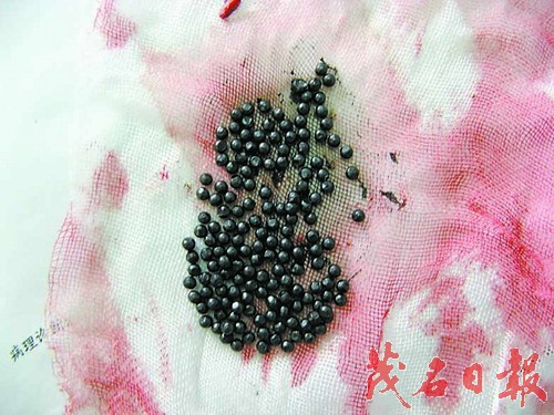 4月23日下午1时多,一位中年男子在家人陪同下到茂名市中医院治病。当时,该男子呼吸困难,但神志仍清醒。经检查,医生证实该男子体内有不少如绿豆般大小的圆状硬物。医生认为,要及时取出这些硬物,否则该男子生命有危险。经该男子同意,市中医院外一科于当天下午4时半开始为男子进行手术。手术至晚上7时左右才完成。在手术过程中,医生在男子脊柱旁边、肺等地方共取出了160粒如绿豆般大小的铁弹。铁弹被取出后,该男子生理特征很快便恢复正常,目前该男子正在进一步康复之中。