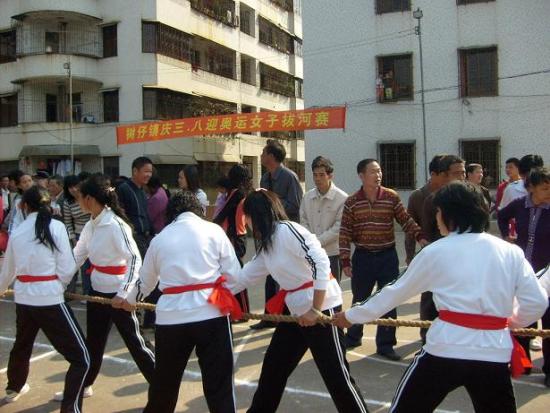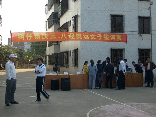 3月7日,树仔镇政府篮球场、树仔镇村委会篮球场上喊声震天,加油声、欢呼声此起彼伏,由树仔镇妇联举办的“庆三八,迎奥运”拔河比赛正在这里紧张进行。整个赛场上人头攒动,各个参赛队的拉拉队高举着彩旗,手舞足蹈为队员摇旗呐喊,赛场气氛异常热烈。原来这里正在举办树仔镇“庆三八,迎奥运”女子拔河比赛。 这次拔河比赛有12支队伍共120人参加,观众多达3000多人,是树仔镇有史以来最大规模的女子拔河比赛。 在比赛现场,各队队员们为了争夺奖牌,纷纷铆足劲,咬紧牙关。来自各单位的啦啦队员们比赛场上的队员还要紧张,满场把脚把住、千万别松手等加油声不断。随着裁判员的一声令下,比赛正式开始,参赛双方的女同胞们都使出九牛二虎之力,劲往一处使,其中最精彩的一场要数旦海代表队与江山代表队的比赛。别以为这些女同胞平时斯斯文文,比赛起来可是有板有眼,一点也不亚于训练有素的专业队。双方队员势均力敌,精彩的角逐博得现场观众的阵阵掌声和喝彩声,最终旦海代表队战胜江山代表队,将拔河比赛的现场气氛推向有一个高潮。 这次拔河比赛分为初赛和决赛两个阶段,经过一天的激烈角逐,旦海代表队获得了第一名,树仔代表队、江山代表队获得了第二名。乡贤邵正义先生为获奖代表队颁奖。整个比赛过程气氛热烈,秩序良好,参赛队伍赛出风格,赛出友谊,赛出水平。充分展示了全镇广大妇女团结、拼搏、进取、健康向上的精神面貌,以实际行动迎接党的十七大和奥运会在召开。比赛最后在热闹、和谐、温馨的气氛中落下了帷幕。