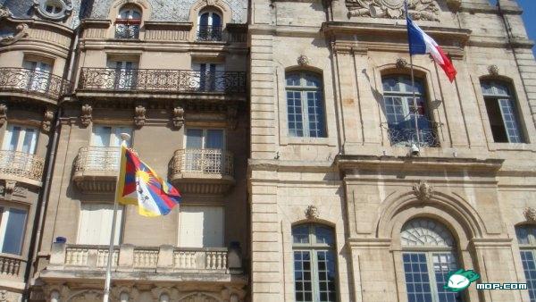 法国竟将【藏独旗】与【五星红旗】挂一起