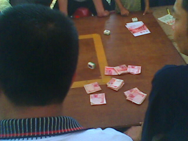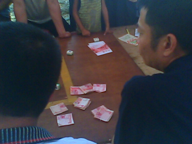 今天赶到赌档的时候已接近尾声,听说赢了钱的都走了,剩下都是差不多输光的赌徒,所以看不到有太大的赌注,甚感遗憾。笔者问起这样公开开赌场怕不怕公安局,他们说每天要给当地派出所进贡几百元,所以每天有不少人报案,派出所也只当不知道。